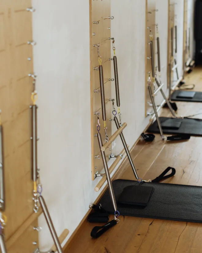 Pilates WerkstattIn unserer Pilates Springboard Class trainierst du 60 Minuten lang an einem vielseitigen Trainingsgerät – dem Springboard, das mit Federn für gezielten Widerstand sorgt. Die Federn machen dein Training intensiver – aber gelenkschonend – und helfen dir, die Tiefenmuskulatur zu aktivieren und deine Beweglichkeit zu fördern. Perfekt, um die "kleinen" Muskeln noch besser zu erreichen. :) Nach der Stunde fühlst du dich verlängert, ausgeglichen und stark – mit einer besseren Haltung und einem neuen Körpergefühl. Für alle Levels geeignet.
