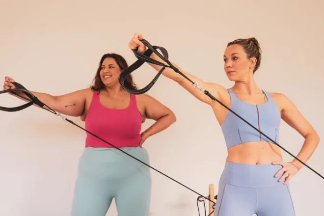 JUNE ParlamentExperience our Pilates-inspired dynamic Reformer signature class designed to enhance your overall strength, flexibility, and posture in no time. You'll soon discover a refreshing sense of well-being that begins with a smile, igniting a positive chain reaction that enriches every aspect of your life. Class Attendance Guidelines Our doors open 15 minutes before each class. Please avoid arriving significantly earlier, as our trainers are focused on their previous clients. However, we kindly ask that you arrive at least 5 minutes prior to class to allow enough time for changing and settling in. For safety reasons, our doors will be locked once the class begins, and unfortunately, trainers cannot accommodate late arrivals. Studio Policies We embrace a shoe-free environment. Please take off your shoes upon entering and leave them in the designated area or in your locker. We recommend wearing grippy socks during class, which are available for purchase in our studio shop. Please be aware that we have a strict no-barefoot policy at JUNE. We kindly ask you to bring your own socks (grip or non-grip) to class. If you need to cancel your class, please do this at least 24 hours before the class starts via your Eversports Account under Bookings > Sign out of activity. Your credit will be refunded to your Eversports account and can be used for a new booking. Thank you for your understanding, and we look forward to seeing you in class!