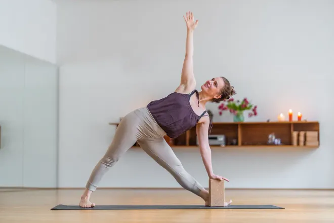 WakeUp Yoga ist für alle Levels gut zugänglich und kann Elemente aus verschiedenen Stilen beinhalten: Hatha Yoga und Vinyasa Flow, aber auch Myofascial Release, Cardio und Pilates.